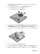 22. ハードディスク ドライブ ラッチを下方向に回転させて(2)、ハードディスク ドライブを取り付