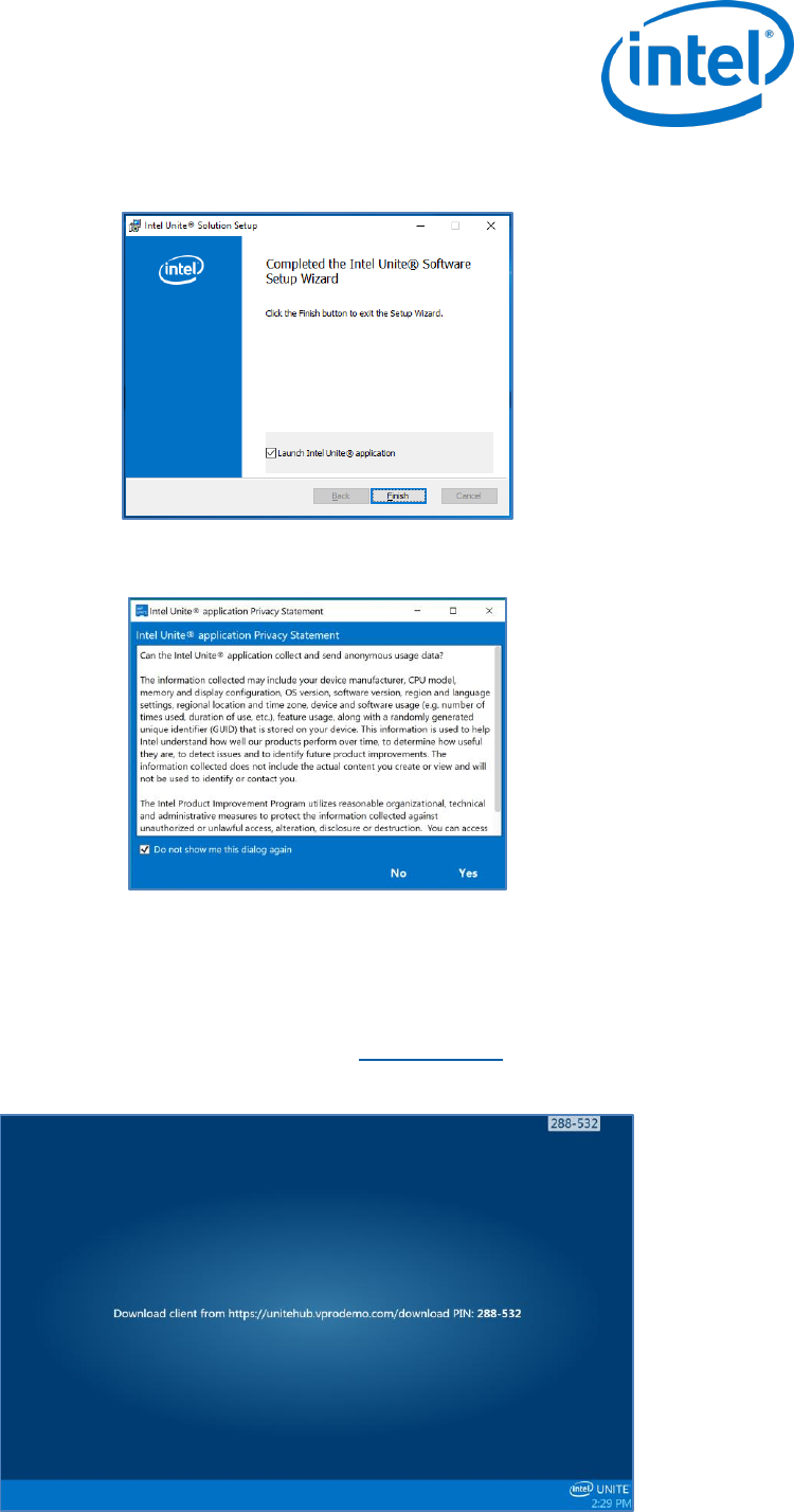 The Intel Unite® application Privacy Statement function is used to collect anonymous usage data.