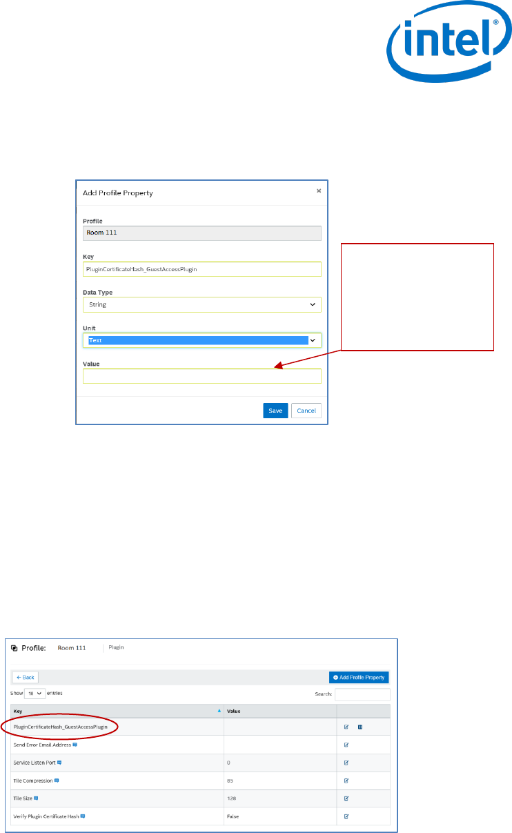 5.6.3  Adding the Certificate Hash to a Plugin on the Admin Web Portal