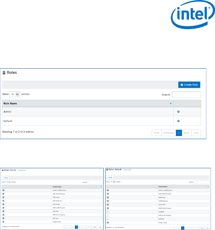 This page shows the roles that are currently defined, which are Admin and Default. You can add new roles