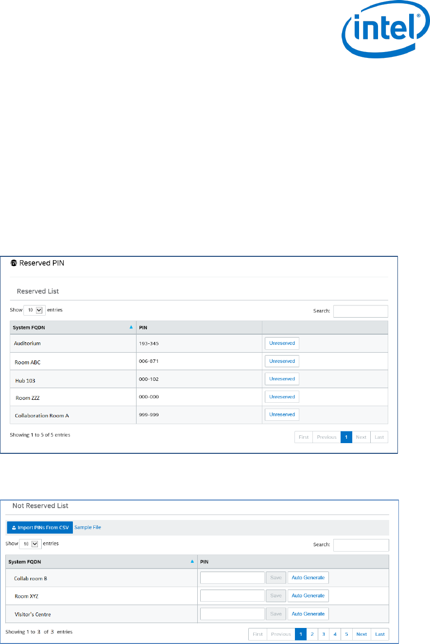 This page shows you two sections, the Reserved and the Not Reserved list of the systems were the PIN