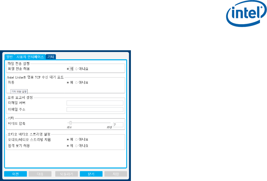 Intel Unite® 앱용 TCP 수신 대기 포트: Intel Unite 에서 수신 대기할 TCP 포트를 지정하는 고급