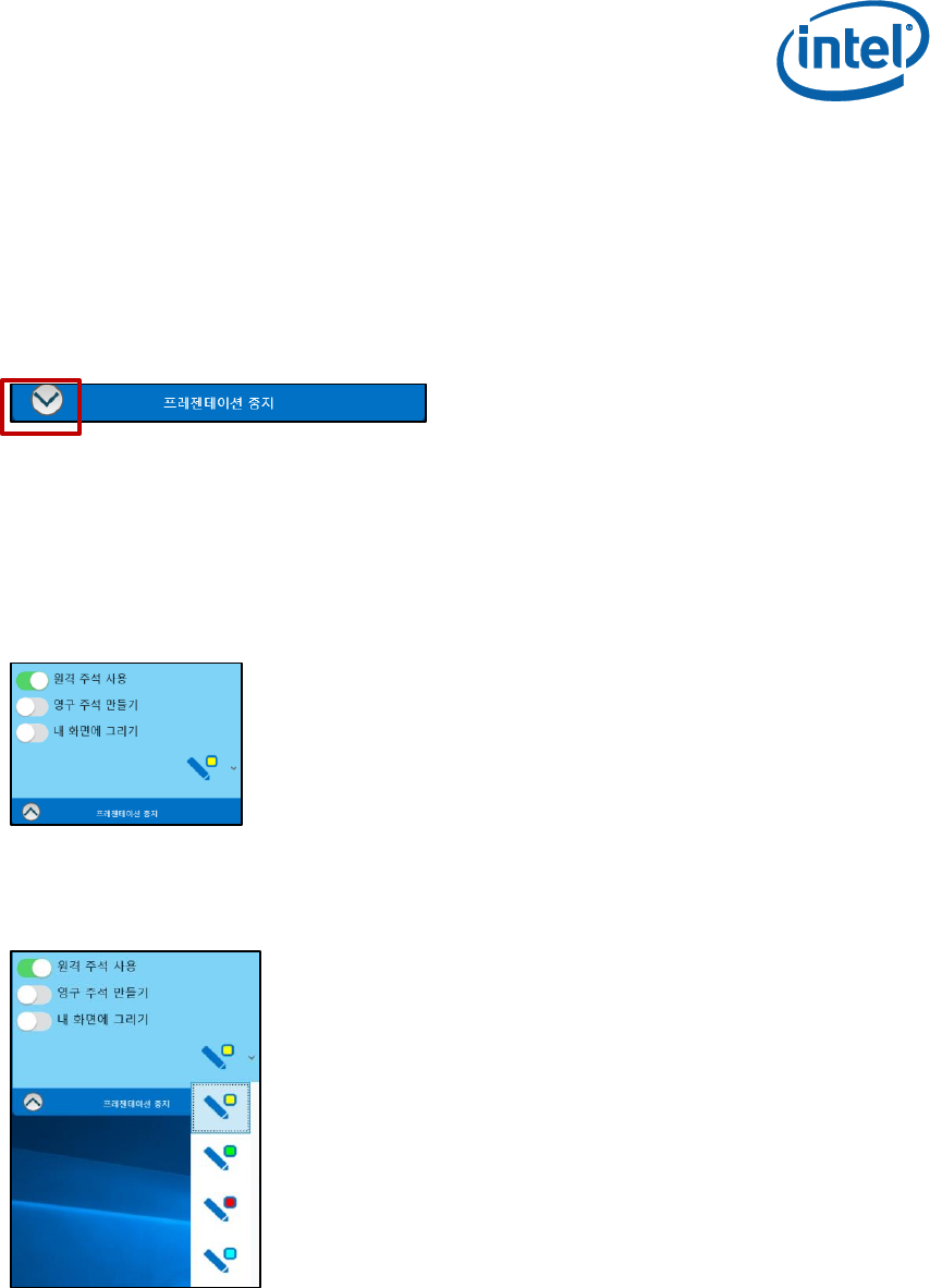 잉크는 5 초 후 서서히 흐려집니다. 발표 중에 주석을 사용하려면: