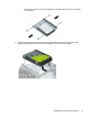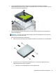 8. Trek de ontgrendelhendel naast de achterkant van de vaste schijf naar buiten (1). Terwijl u de
