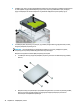 9. Αφαιρέστε τη θήκη της μονάδας δίσκου. Πιέστε τον μοχλό απελευθέρωσης στην αριστερή πλευρά της