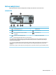 Sistemi brez vPro Deli na zadnji strani 1 Vhodni priključek za zvok 5 Dodatna vrata 2 Omrežni priključek RJ-45 6 Vrata USB 2.0 (4) 3 Vtič za izhod zvoka za naprave z lastnim napajanjem 7 Vrata USB 3.x (2) 4 Priključki za monitor DisplayPort (2) 8 Priključek za napajalni kabel OPOMBA: Vaš model ima lahko dodatna vrata, ki so na voljo pri HP-ju.
