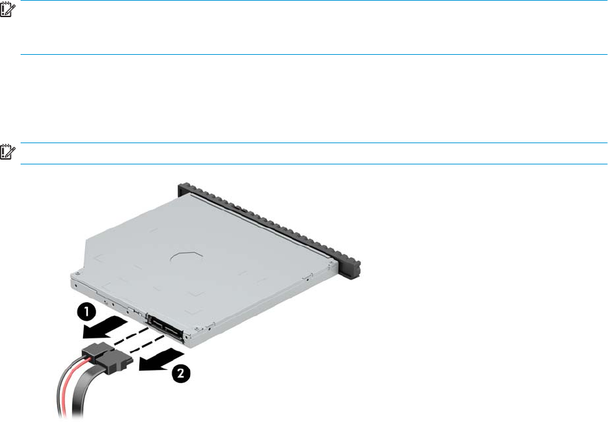 7. Koppla bort strömkabeln (1) och datakabeln (2) från den optiska diskenhetens baksida.