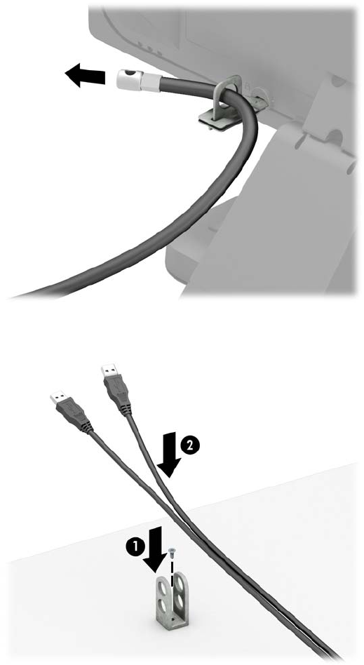 5. Trä säkerhetskabeln genom kabelhållaren som är installerad på bildskärmen.