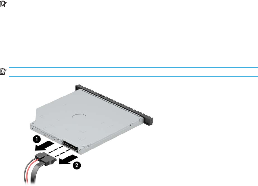 7. Desligue o cabo de energia (1) e o cabo de dados (2) da parte posterior da unidade ótica.