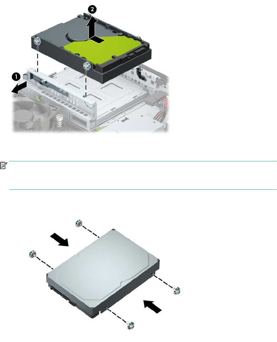NOTA: Se estiver a substituir uma unidade de disco rígido de 3,5 polegadas, transra os parafusos de