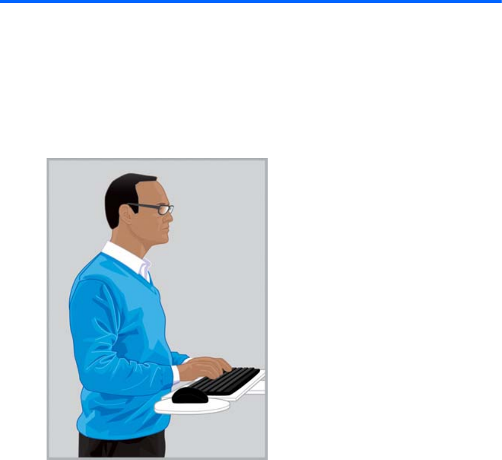 Mainot ķermeņa stāvokli, iespējams, ir jāpielāgo darba virsma, lai iegūtu ērtu stāvokli pleciem, rokām