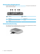Komponenter på bagsidepanelet Yderligere oplysninger finder du på http://www.hp.com/go/quickspecs/ ved at søge efter din specifikke tynde klient for at finde dens QuickSpecs. Kompo nent Komponent Kompo nent Komponent 1 USB-porte (2) 4 DisplayPort-port 2 Hot plug-fibertransceiverport (SFP), lille formfaktor 5 Strømstik 3 DVI-D port Serienummerets placering Hver enkelt tynd klient har et entydigt serienummer, der er placeret som vist i følgende illustration.