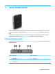 1 Toote funktsioonid Selles juhendis kirjeldatakse õhukese kliendi funktsioone. Õhukesele kliendile paigaldatud riist- ja tarkvara kohta lisateabe saamiseks minge aadressile http://www.hp.com/go/quickspecs ja otsige see õhuke klient üles. Teie õhukese kliendi jaoks on saadaval mitu suvandit. Saadaolevate suvandite kohta lisateabe saamiseks minge HP veebisaidile aadressil http://www.hp.com ja otsige üles konkreetne õhuke klient. Esipaneeli komponendid Lisateabe saamiseks minge aadressile http://www.hp.
