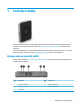 1 Funkcije izdelka V tem priročniku so opisane funkcije tankega odjemalca. Za več informacij o strojni in programski opremi, nameščeni na tem tankem odjemalcu, pojdite na http://www.hp.com/go/quickspecs in poiščite ta tanki odjemalec. Za vaš tanki odjemalec so na voljo različne možnosti. Za več informacij o nekaterih možnosti, ki so na voljo, pojdite na spletno mesto HP na naslovu http://www.hp.com in poiščite vaš tanki odjemalec. Komponente na sprednji plošči Za več informacij obiščite http://www.hp.
