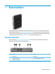 1 Ürün özellikleri Bu kılavuzda ince istemcinin özellikleri açıklanmaktadır. Donanım ve bu ince istemcide yüklü olan yazılım hakkında daha fazla bilgi için http://www.hp.com/go/quickspecs adresine giderek bu ince istemciyi arayın. İnce istemciniz için çeşitli seçenekler bulunmaktadır. Mevcut seçeneklerin bazıları hakkında daha fazla bilgi için HP web sitesini ziyaret edin http://www.hp.com ve ince istemci modelinizi aratın. Ön panel bileşenleri Daha fazla bilgi için, http://www.hp.