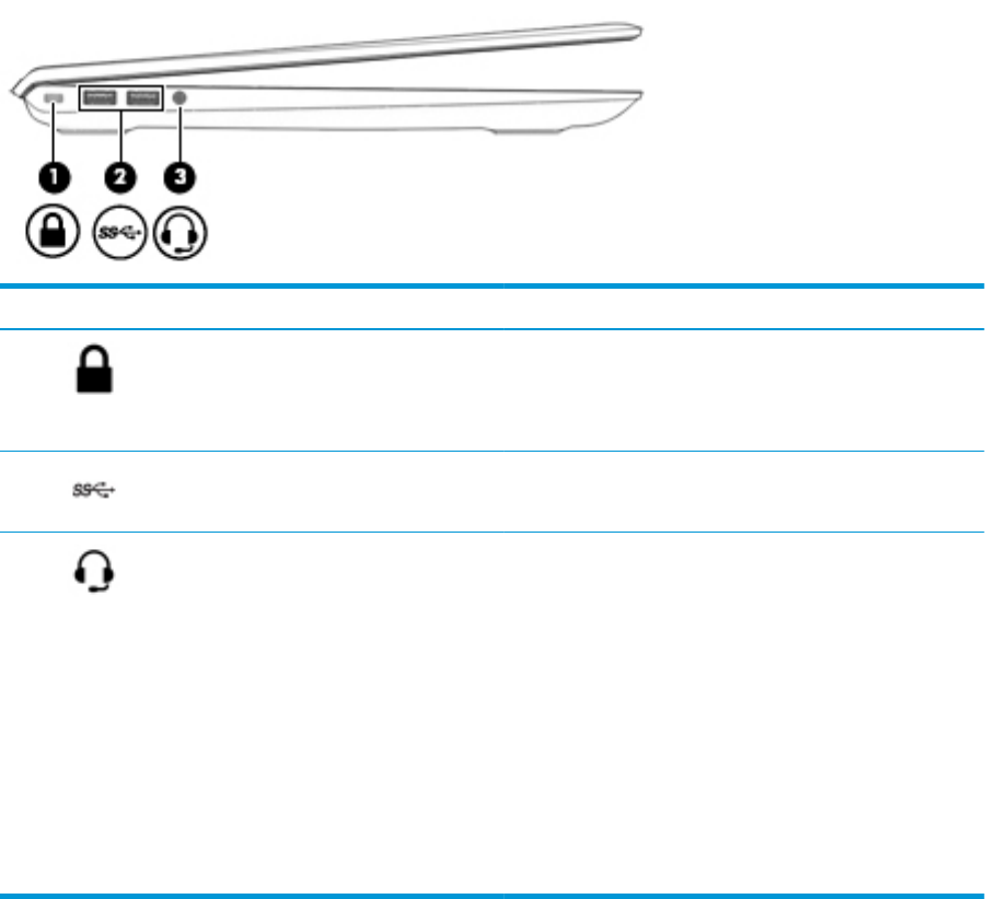 (1) Security cable slot Attaches an optional security cable to the computer.