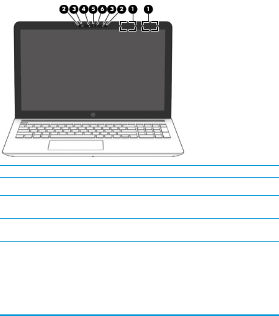 (6) Infrared camera (select products only) Allows a facial recognition logon to Windows, instead of a password
