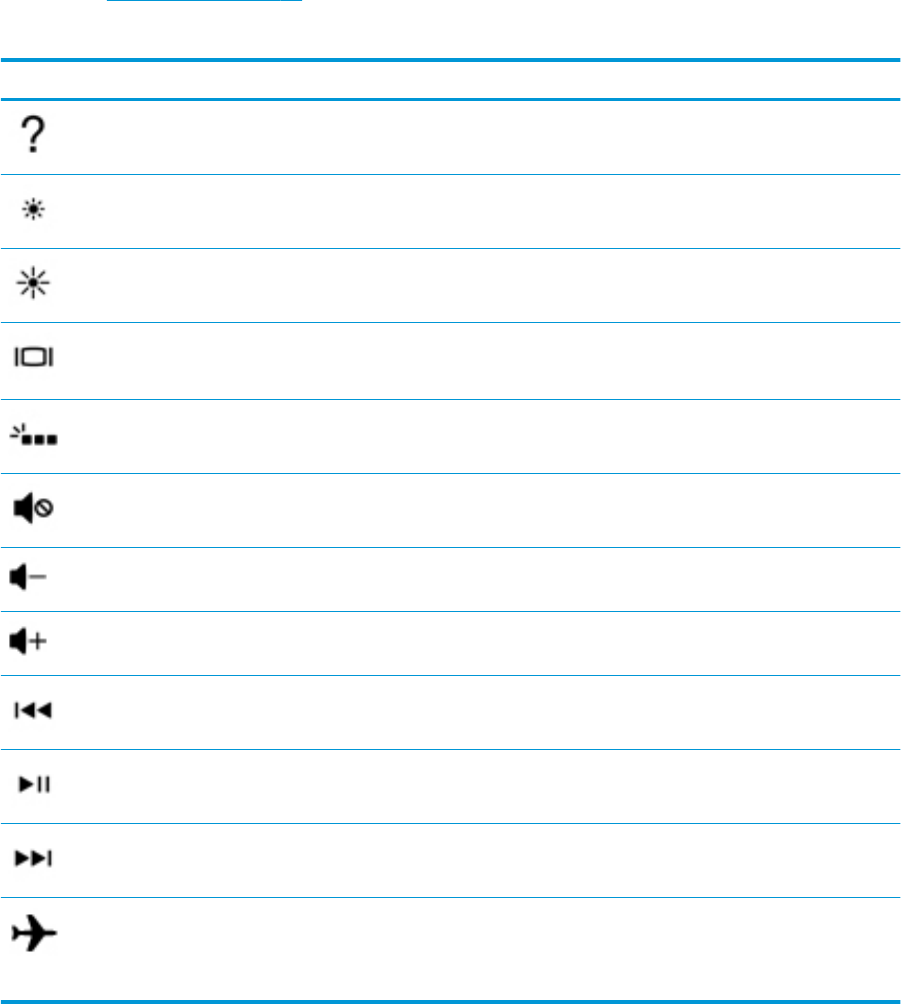 An action key performs the function indicated by the icon on the key. To determine which keys are on your