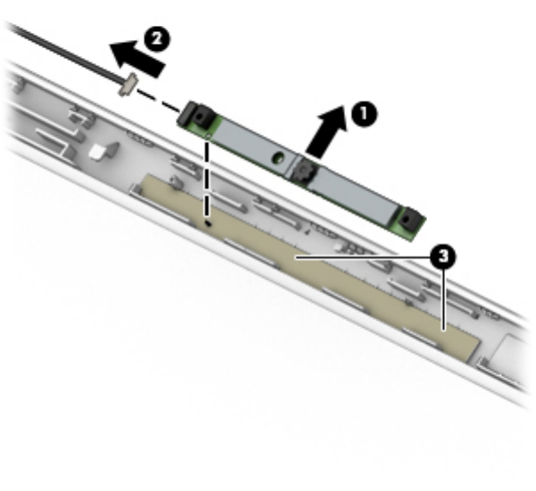 b. Pry up to disengage the camera/microphone module from the adhesive that secures it to the