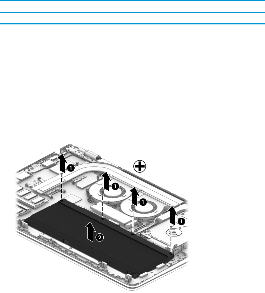 1. Remove the four Phillips PM2.0×4.0 screws (1) that secure the battery to the computer.