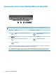 Komponenter på frontpanelen (ProDesk 400) OBS! Punk t Din datormodell kan se något annorlunda ut än den som visas på bilden i det här avsnittet. Ikon Komponent Punkt Ikon Komponent 1 USB 3.x-port 4 Kombinerat jack för ljudutgång (headset)/ ljudingång (mikrofon) 2 USB 3.x-port med HP Sleep and Charge* 5 Hårddisklampa 3 Hörlursjack 6 Strömknapp med två lägen *När datorn är på ansluter USB-porten en USB-enhet och ger dataöverföring med hög hastighet.