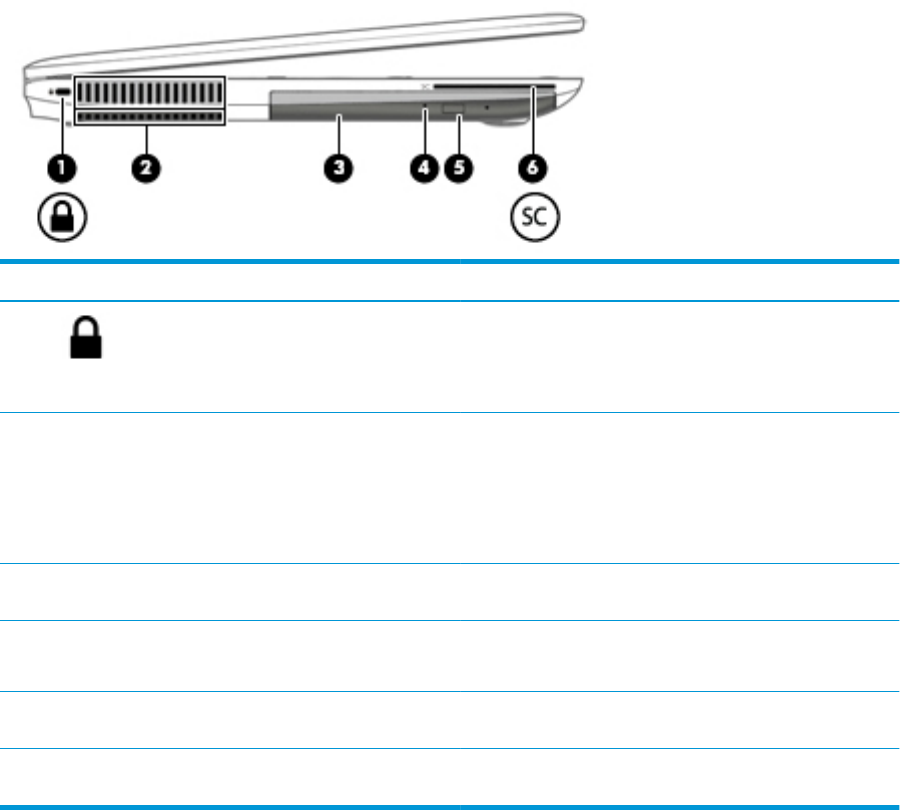 (1) Slot kabel pengaman Menghubungkan kabel pengaman opsional ke komputer.