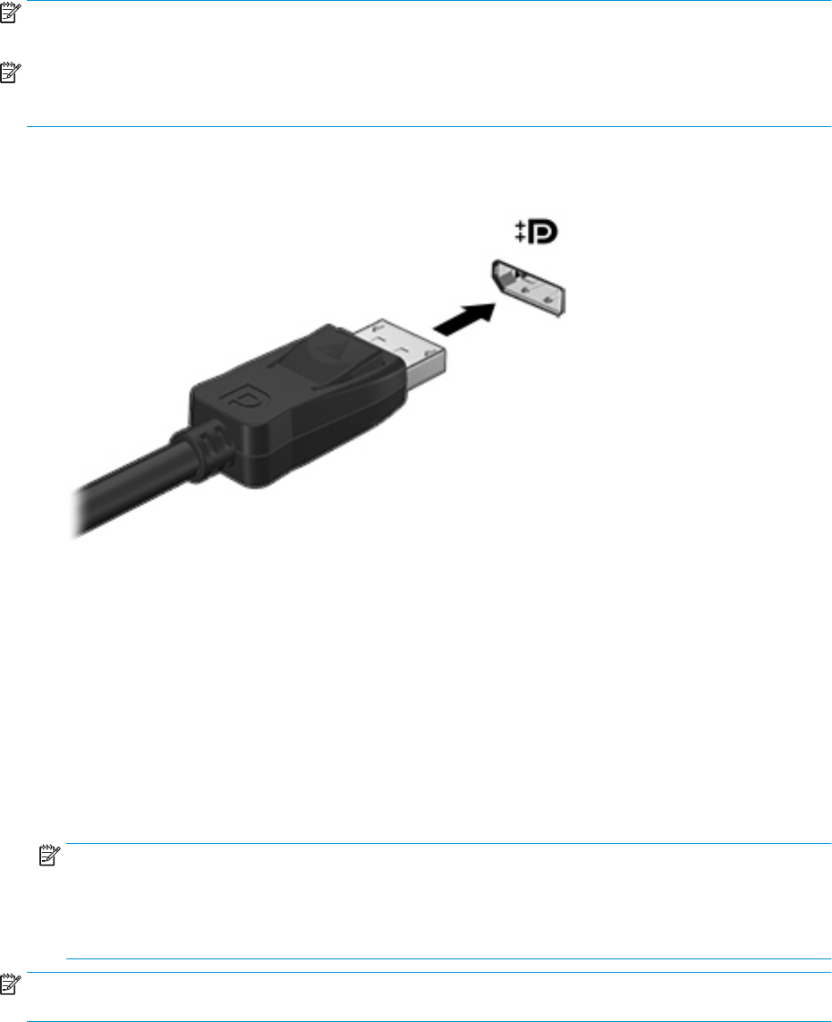 CATATAN: Untuk mengirim sinyal video dan/atau audio melalui DisplayPort Dual-Mode, diperlukan kabel
