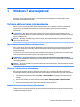 6. Valige Troubleshoot (Tõrkeotsing). 7. Valige Reset (Lähtesta). 8. Jätkamiseks järgige ekraanilolevaid juhiseid. Taaste Windowsi USB-taastemäluseadme abil Süsteemi taastamiseks varem loodud USB-taastemäluseadme abil: MÄRKUS. Kui te pole USB-mäluseadet loonud või kui loodud taasteketas ei tööta, vt Taaste Windows operatsioonisüsteemi taastekandja abil (tuleb eraldi osta) lk 23. 1. Võimalusel varundage kõik isiklikud failid. 2. Sisestage loodud USB-taastemäluseade arvuti USB-porti. 3.