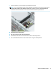 7. Koppla bort strömkabeln (1) och datakabeln (2) från hårddiskens baksida.