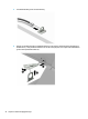 bildskärmen (1), stäng de fällbara händerna för att säkra låset på plats (2) och skjut sedan kabelhållaren