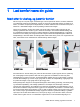 5 Brug af berøringsteknologi Brug af en berøringsfølsom skærm og et all-in-one produkt Berøringsteknologi er udmærket, når du vil interagere direkte med objekter på skærmen. Når du bruger berøringsfølsom, skal du være specielt opmærksom på din nakke, skuldre og arme. Husk, der er ikke én skærmplacering, der kan holde alle dine kropsdele tilfredse altid, især når du bruger berøring.