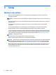● With a monitor on the thin client: Routine thin client care Use the following information to properly care for your thin client: ● Never operate the thin client with the outside panel removed. ● Keep the thin client away from excessive moisture, direct sunlight, and extreme heat and cold. For information about the recommended temperature and humidity ranges for the thin client, see Specifications on page 30. ● Keep liquids away from the thin client and keyboard.