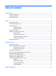 Table of contents 1 Product features ........................................................................................................................................... 1 Front panel components ....................................................................................................................................... 1 Rear panel components .........................................................................................................................................