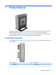 1 Product features This guide describes the features of the thin client. For more information about the hardware and software installed on this thin client, go to http://www.hp.com/go/quickspecs and search for this thin client. Various options are available for your thin client. For more information about some of the available options, go to the HP website at http://www.hp.com and search for your specific thin client. Front panel components For more information, go to http://www.hp.