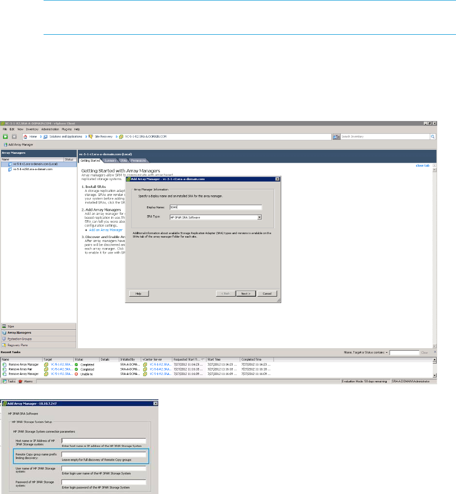 - 7 Configuring VMware vCenter Site Recovery Manager and HP 3PAR SRA
