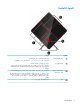 الوصف المكوّن ()٧ مأخذ/أضواء حالة ( RJ-45شبكة) ()٨ مأخذ صوت خارج (سماعة الرأس) ()۹ موصل الطاقة يوصل كبل الشبكة. ● أبيض :الشبكة متصلة. ● كهرماني :وجود نشاط على الشبكة. يوصل مكبرات صوت ستريو اختيارية مزودة بالطاقة ،أو سماعات رأس ،أو سماعات للأذن ،أو سماعات رأس مزودة بميكروفون ،أو كبل صوت التلفزيون.