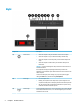 Right Component (1) Description Power button ● When the computer is off, press the button to turn on the computer. ● When the computer is on, press the button briefly to initiate Sleep. ● When the computer is in the Sleep state, press the button briefly to exit Sleep. ● When the computer is in Hibernation, press the button briefly to exit Hibernation. CAUTION: Pressing and holding down the power button results in the loss of unsaved information.