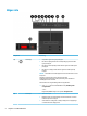 Höger sida Komponent (1) Beskrivning Strömknapp ● Slå på datorn genom att trycka på knappen. ● När datorn är påslagen aktiverar du strömsparläget genom att snabbt trycka på knappen. ● När datorn är i strömsparläge avslutar du detta genom att snabbt trycka på knappen. ● När datorn är i viloläge avslutar du detta genom att snabbt trycka på knappen. VIKTIGT: Om du håller ned strömknappen förlorar du all information som inte har sparats.