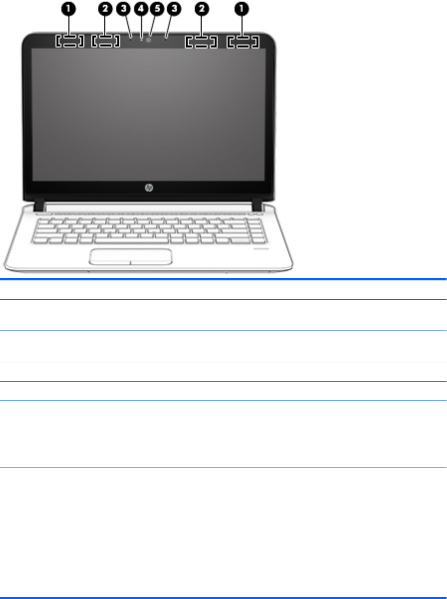 WWAN 天線 (2)*(僅限特定產品) 傳送及接收無線訊號,以便與無線廣域網路 (WWAN) 通