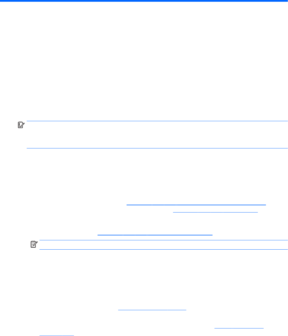 如需詳細資訊,請參閱位於第 53 頁的使用 HP Recovery Manager 復原。