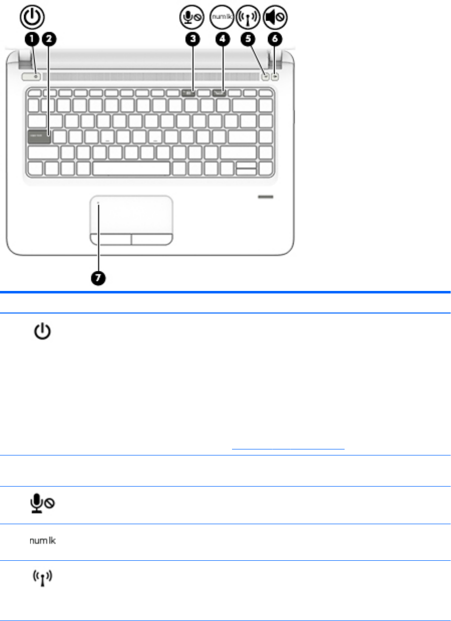 無線通訊指示燈 亮起:已開啟內建無線裝置,例如無線區域網路