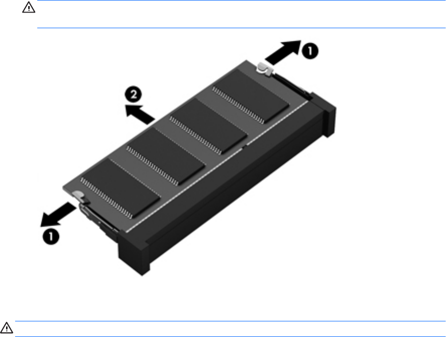 ,然後輕輕地將記憶體模組從記憶體模組插槽中取出。