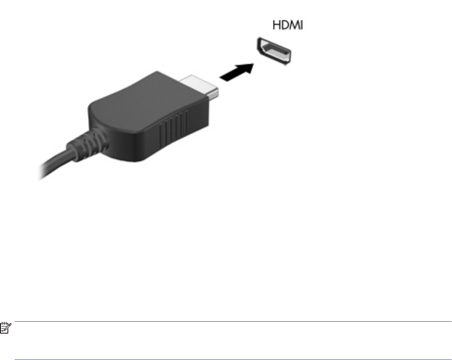 HDMI-audio seadistamiseks ühendage kõigepealt heli- või videoseade (nt kõrglahutusega teler) arvuti HDMI-