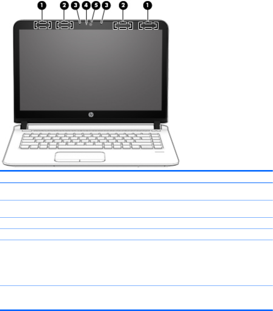 (2) Antena WWAN (2)* (hanya produk tertentu) Mengirim dan menerima sinyal nirkabel untuk berkomunikasi dengan