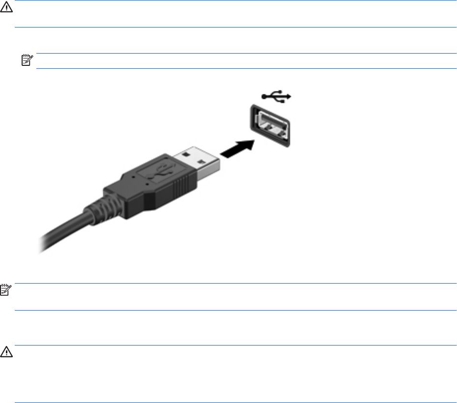 PERHATIAN: Untuk mengurangi risiko kerusakan pada konektor USB, lakukan pelan-pelan saat