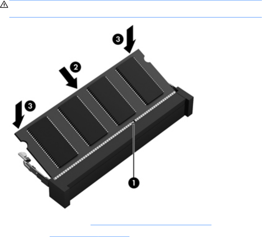 c. Pelan-pelan, tekan modul memori ke bawah (3) sambil memberi tekanan di tepi kiri dan tepi kanan