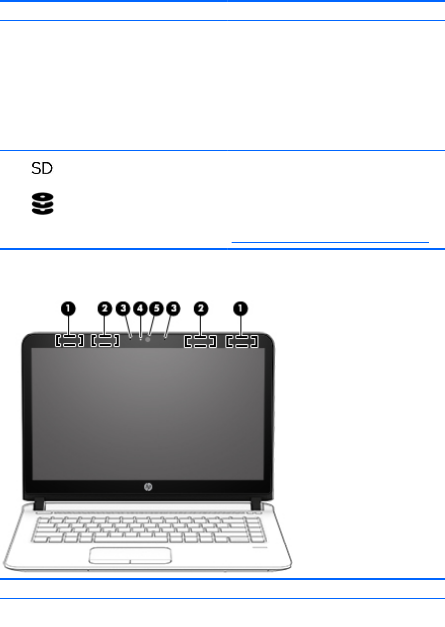 (1) WLAN-i antennid (2) (ainult teatud toodetel) Saadavad ja võtavad vastu raadiosignaale traadita kohtvõrkudega