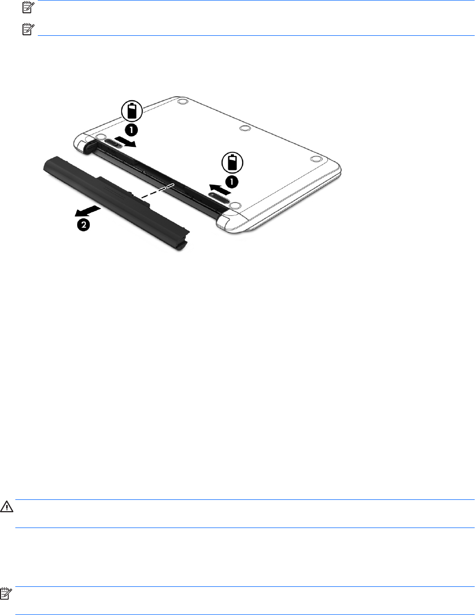 2. Lükake aku vabastamiseks vabastusriive (1).