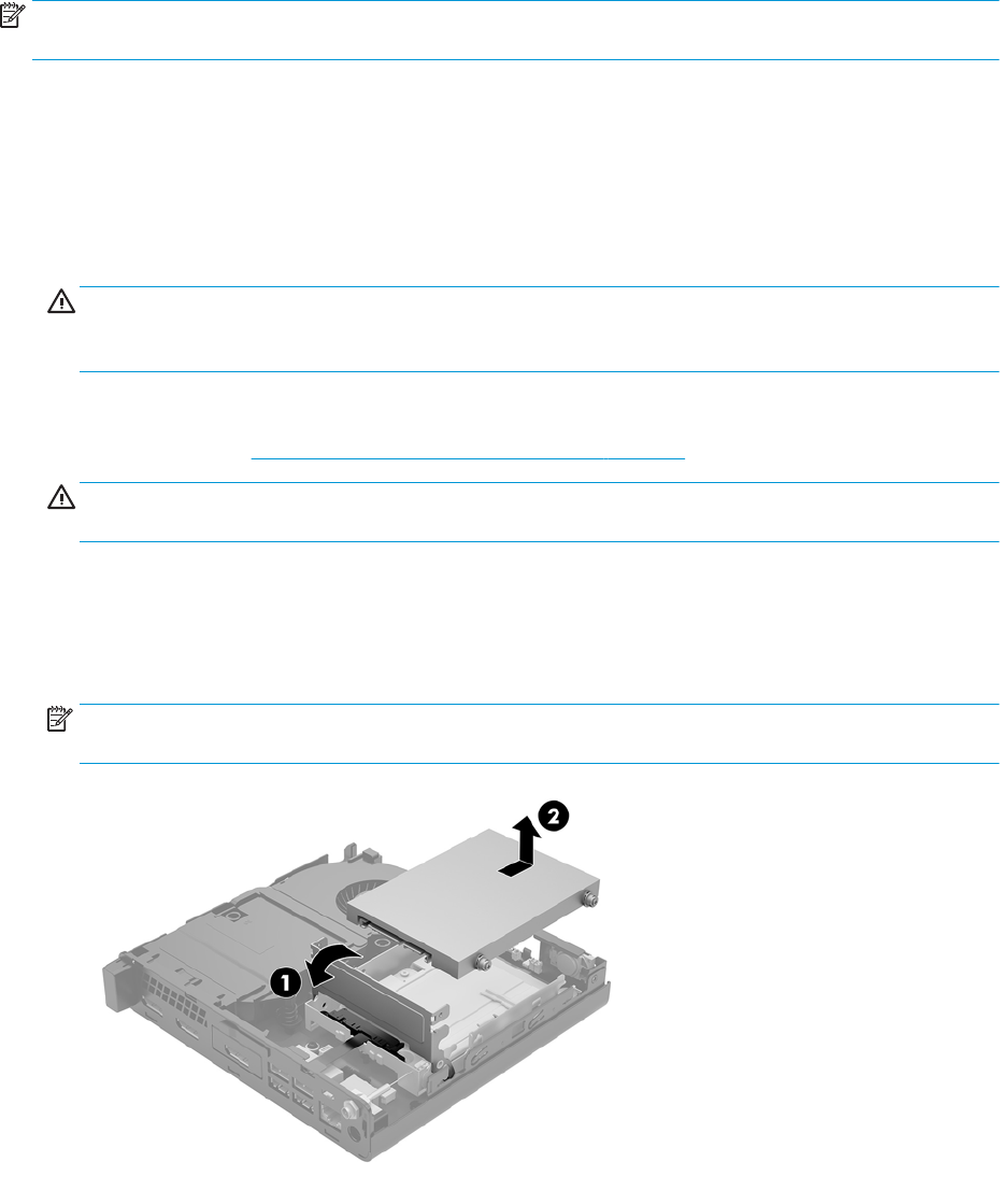 6. A merevlemez-meghajtó eltávolításához fordítsa el a merevlemez-meghajtó reteszt felfelé és kifelé (1),