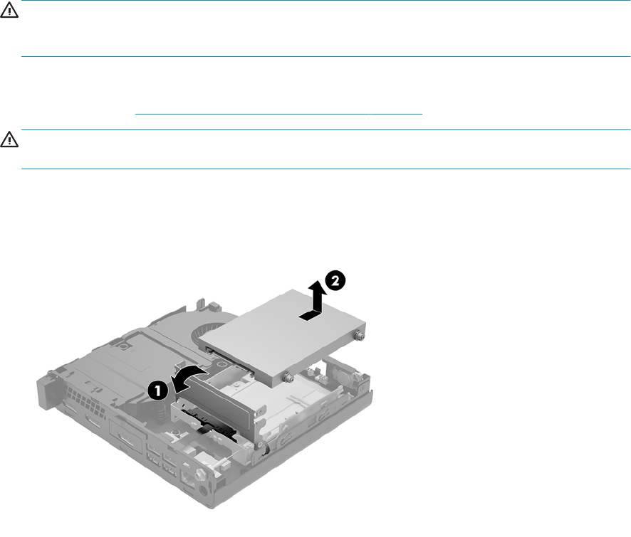 8. EliteDesk 800 65 W esetén távolítsa el a másodlagos ventilátort a merevlemez alól.